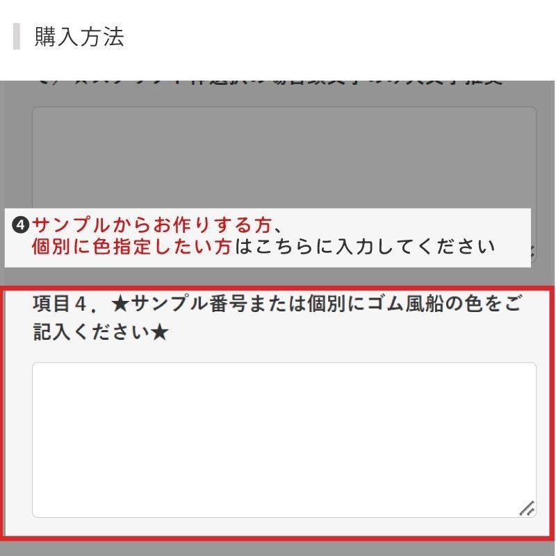 【項目4.★サンプル番号または個別にゴム風船の色をご記入ください★】の欄に