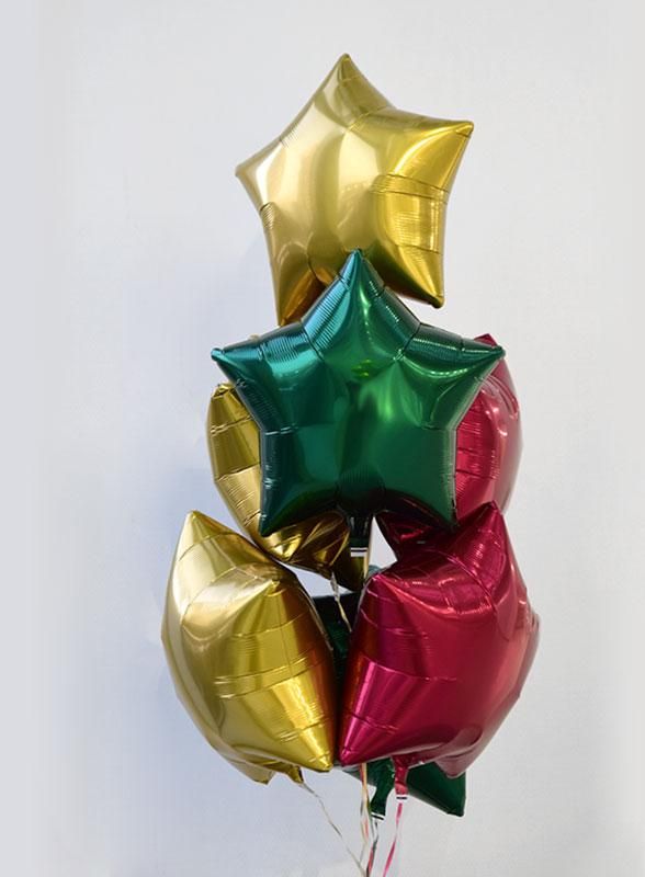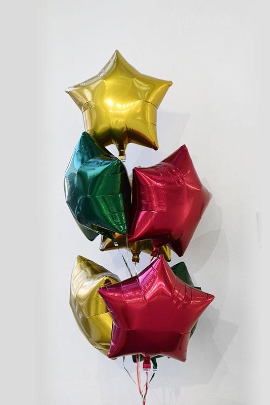 アンティークゴールド+フォレストグリーン+ワインレッド スター7個ブーケ【バルーン 風船 浮かせてお届け】クリスマス xmas