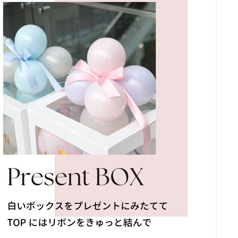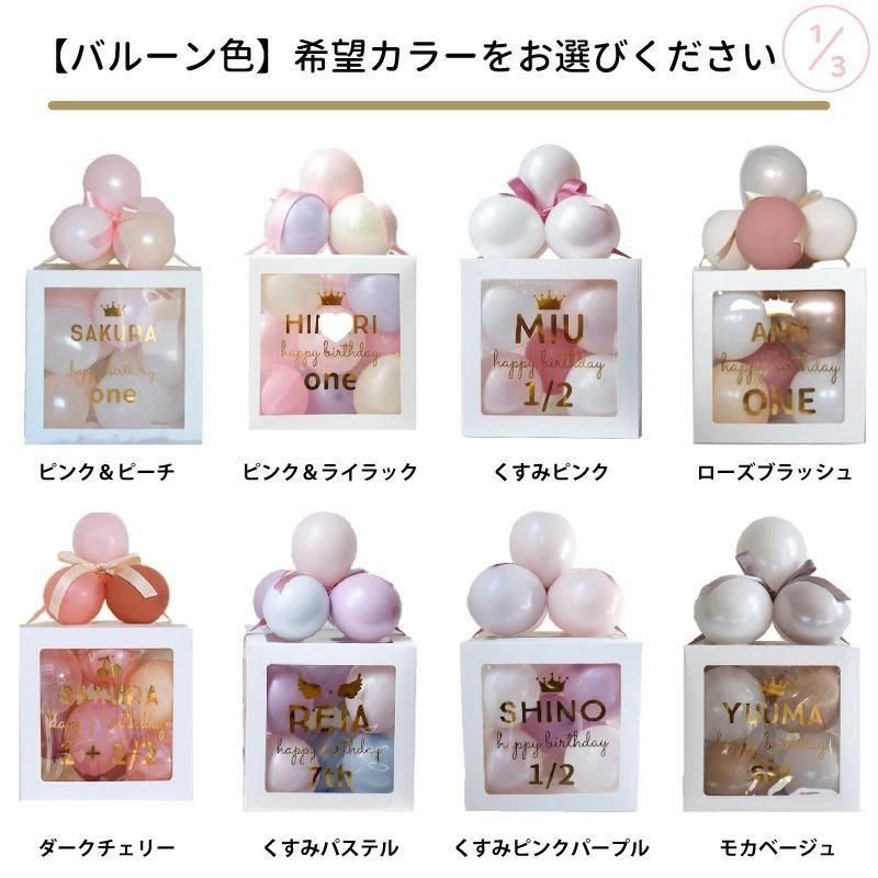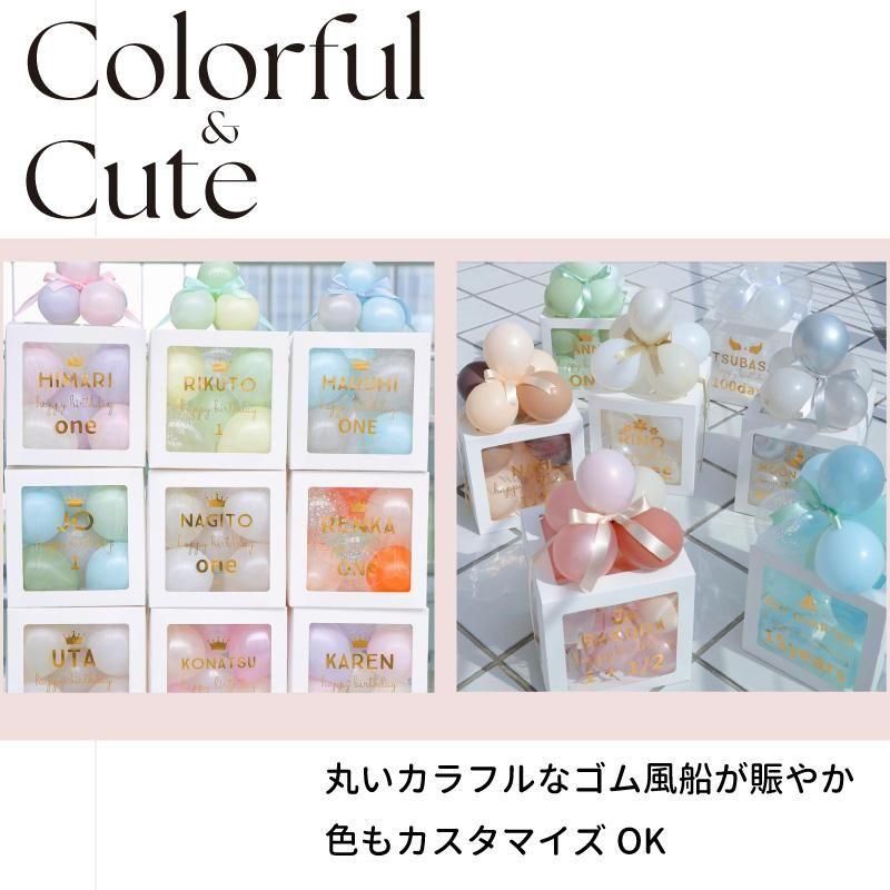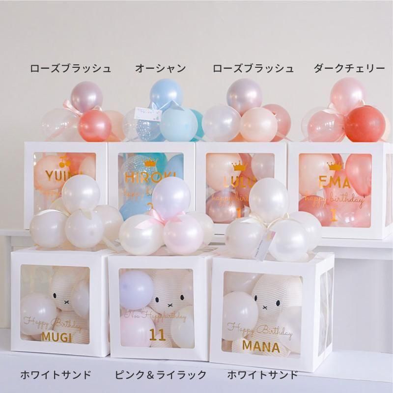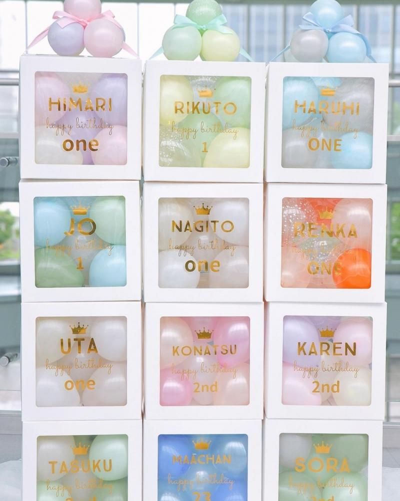 特別なお誕生日や記念日にぴったり! 透明ボックスにカラフルなバルーンを詰め込んだ、華やかでかわいいギフトバルーンです。