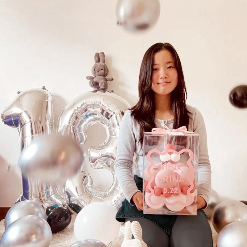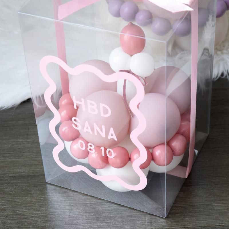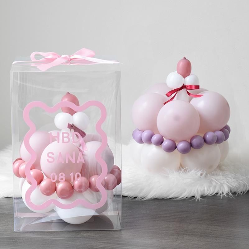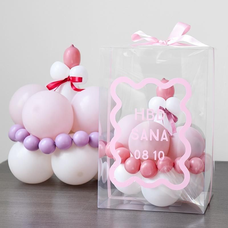 人気のバルーンケーキが贈り物としても便利なデザインになりました。 しっかりとした透明のボックスに入れてお届け。