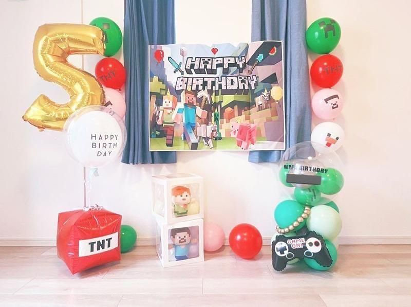 商品説明 大人気ゲーム「マインクラフト」をイメージした、誕生日バルーンセットです。