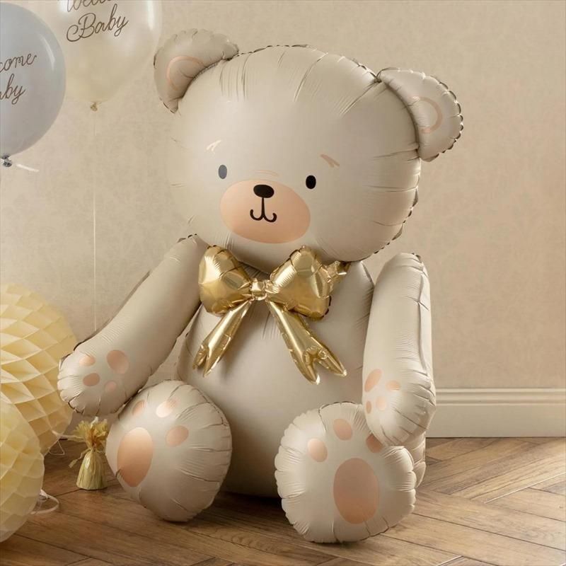 【Party Deco】自立式 テディベア バルーン クリーム色 【ぺしゃんこでお届け】フィルム風船 ガス無し (FB285-079)