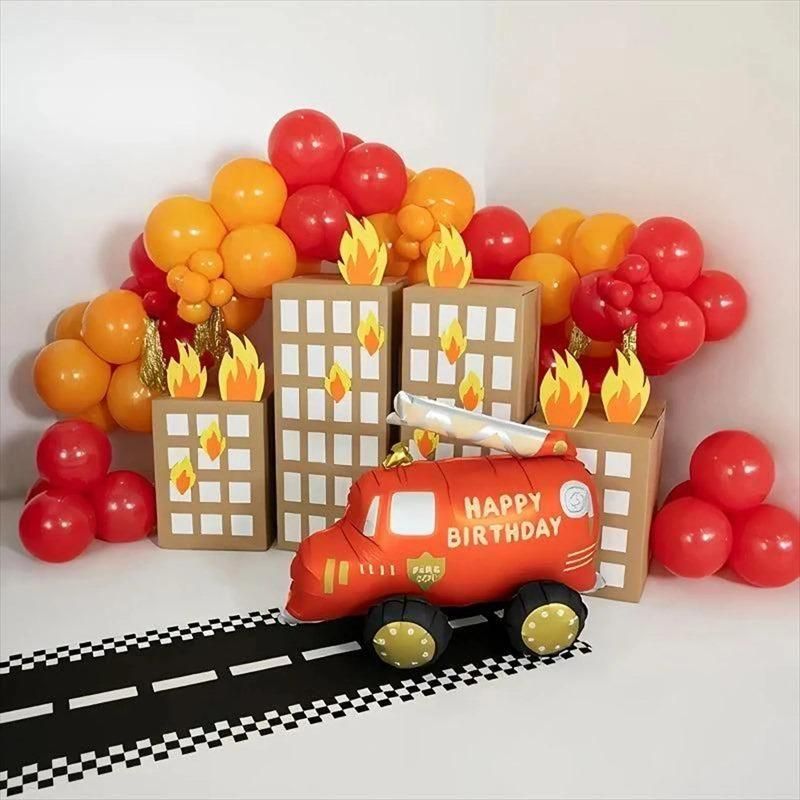 【Party Deco】自立式 消防車 バルーン 【ぺしゃんこでお届け】フィルム風船 ガス無し (FB240)