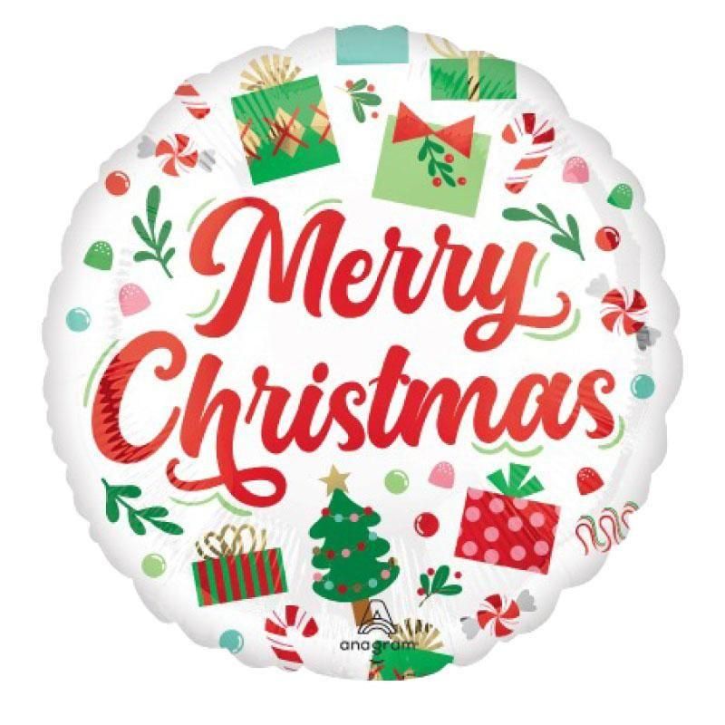クリスマス 風船 サンタズ クリスマス プレゼンツ 18インチ 【ぺしゃんこでお届け】 プレゼントデザイン バルーン (48956)