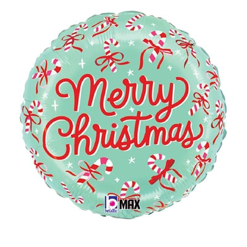 クリスマス 風船 Merry Christmas キャンディーケーン&リボン 18インチ 【ぺしゃんこでお届け】 キャンディケイン (26590)