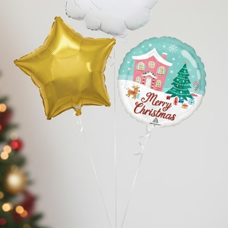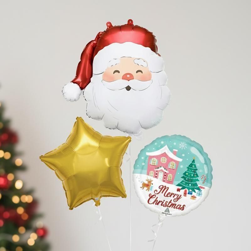 サンタクロース メッセージバルーンとスター付き3個ブーケ 【浮かせてお届け】 ヘリウムガス入り クリスマスパーティー