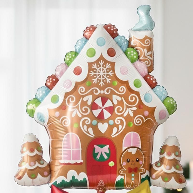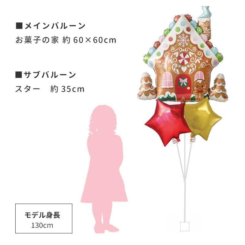 商品名 クリスマス バルーン : お菓子の家 ジンジャーブレッドハウス スター2個 バルーンブーケ